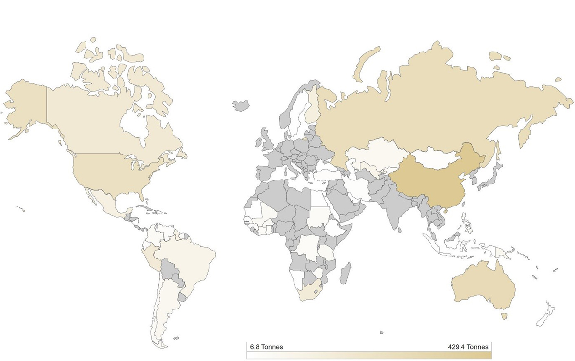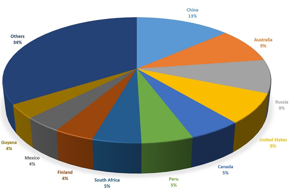 多年來,南非一直是世界上最重要的黃金生產國。從 1880 年代到 2006 年,它是世界主要的金礦開採地。在 1970 年,為 例如,南非黃金產量佔全球黃金產量的近 79%。然而,中國在 2007 年超過了南非,使其不再是 前三名的國家。中國、美國和澳大利亞是世界三大黃金生產國,南非和俄羅斯位居榜首。今天, 中國是主要的黃金生產國。